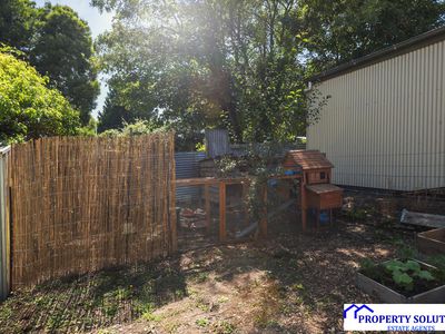 The yard it fully fenced with a chicken run and storage shed. It is the ideal yard for children and animals to run around and play. Grow your own vegetables, collect your chicken eggs or just relax in the tranquility of the surrounding nature.
